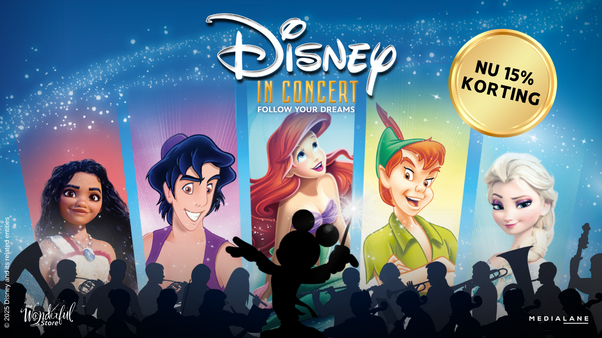 Omdat jij een product hebt gekocht bij de Wonderful Store, krijg je nu een exclusieve korting op tickets voor Disney in Concert: Follow Your Dreams.